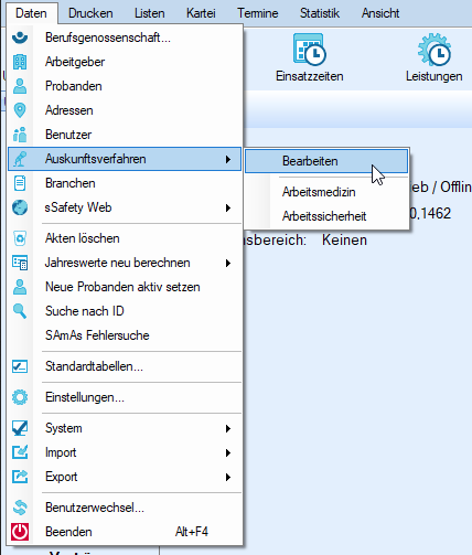 Im Menü Daten wurde der Auswahlpunkt Interview ebenfalls zu Auskunftsverfahren umbenannt: