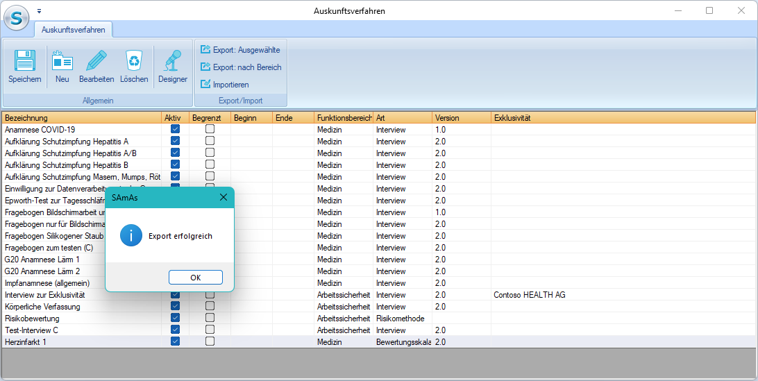 Auch ein Export der Bewertungsskala kann über die Schaltfläche Export: Ausgewählte ausgeführt werden: