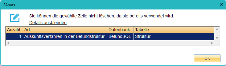 War die Skala schon in Benutzung, erscheint nachfolgende Meldung, wenn Sie versuchen diese zu löschen: