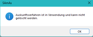 Wählen Sie diese an, öffnet sich ein weiteres Fenster mit der Bezeichnung Auskunftsverfahren, wo Ihnen alle angelegten Auskunftsverfahren angezeigt werden.