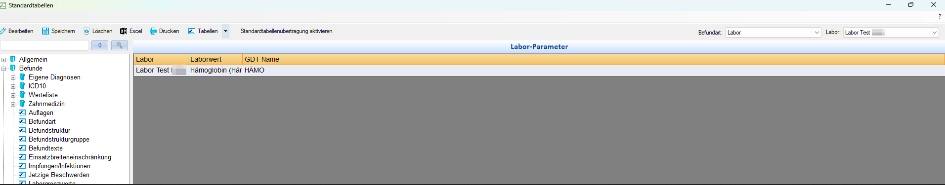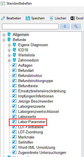 Nur in SAmAs.one verfügbar.Die Standardtabelle Befunde (zu finden unter Daten -> Standardtabellen) wurde um die Tabelle Labor-Parameter erweitert.