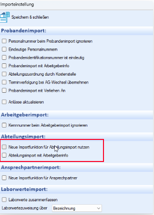 Die nachfolgende Abbildung zeigt einen Filter für den Import von Abteilungen: