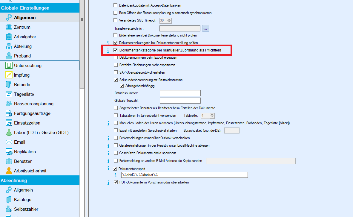 Mit der neuen globalen Einstellung "Dokumentenkategorie bei manueller Zuordnung als Pflichtfeld" (Daten -> Einstellungen -> Allgemein) wird sichergestellt, dass bei manuell hinzugefügten Dokumenten immer eine Dokumentenkategorie ausgewählt werden muss. Dies gilt für alle Uploads per Drag & Drop oder über manuelle Zuordnung.