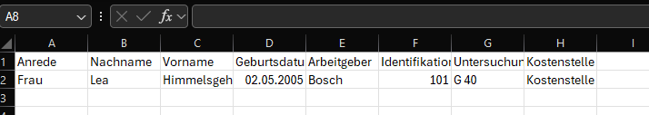 Für die Anlage und Aktualisierung eines Probanden müssen beim Import folgende Angaben vorhanden sein: