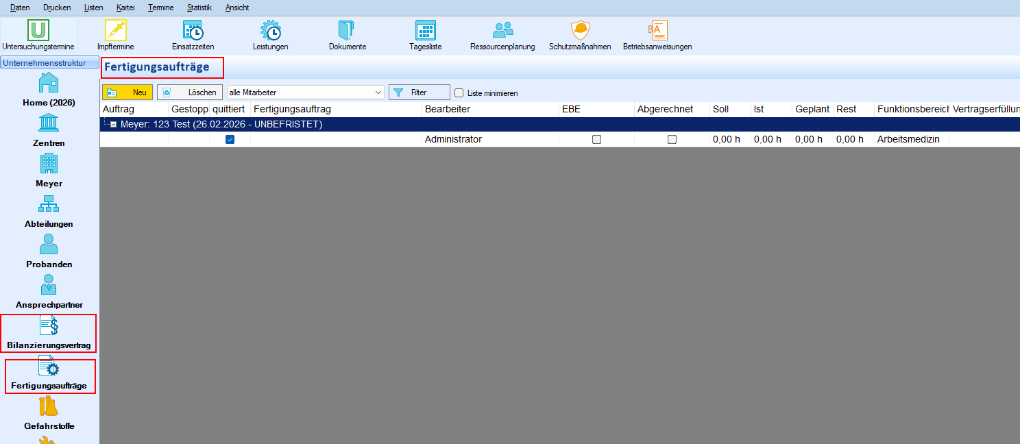 Voraussetzung: Zu dieser Vertragsposition existiert genau ein Fertigungsauftrag